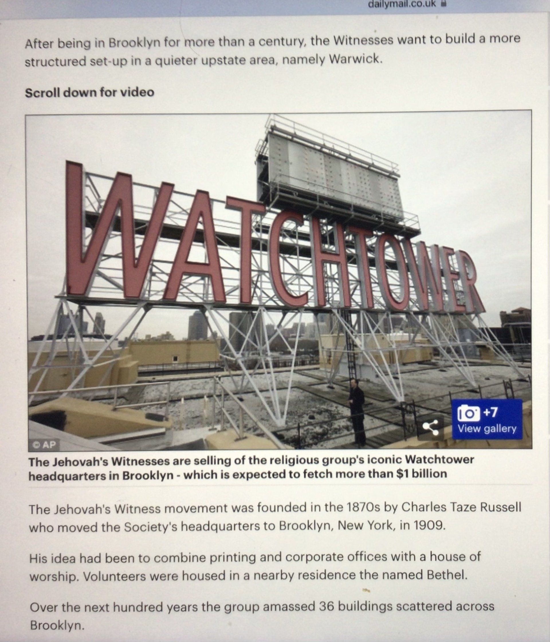 Моля, обърнете внимание: този раздел е предоставен изключително от активен издател. снимка: WT HQ Warwick NY