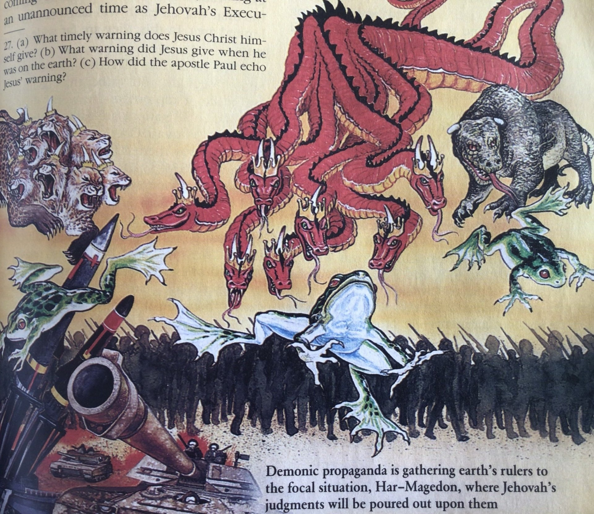 Si las organizaciones de la iglesia dicen seguir las promesas políticas entonces la gente no debe seguir este consejo ya que es una trampa. Entonces, solo porque los políticos o los líderes religiosos hacen grandiosas promesas juntos, no se dejen engañar, también será mucho más fácil estar de acuerdo con el gobierno, aquellos que no lo hagan serán cada vez más impopulares, pero Jesús advirtió que no sigan a los falsos mesías. Nuestras propias vidas estarán en juego. Lea todo el capítulo 24 de Mateo, que trata sobre las advertencias, los temores, las señales, las comparaciones con Noé, algunas partes que necesitarán más explicación. La religión de JW dice que Jesús vino invisiblemente alrededor de 1914. Es cierto que Cristo ha estado observando cómo ocurrían los eventos, que se acercaba un período que se acercaba al final donde la obra de predicación vital se llevó a cabo en todo el mundo por cristianos que llevaban el nombre personal de Dios 'Jehová. ' a toda la humanidad. Citan la frase 'Jesús 'separará las ovejas de las cabras'. Esta acción final se completa justo antes del regreso de Cristo 'donde todo ojo lo verá'. Entonces, cada ser humano debe elegir no una membresía religiosa en particular, sino convertirse en una oveja figurativa, lo que significa que pone su fe en la venida de Cristo. Aquellos que toman el camino fácil donde las autoridades políticas brindan apoyo para asegurar a sus ciudadanos que todo estará bien y que han establecido una 'paz y seguridad' duradera, esto es una trampa, una mentira, sin embargo ellos mismos lo creerán. . Ver 1 Tesalonicenses 5:1-4 NVI GN 'todo está tranquilo y seguro'. Entonces, algunos han expresado la opinión de que sienten una oscuridad, una atmósfera sombría que desciende sobre la tierra, que se ha sentido desde el comienzo de los bloqueos con COVID 19 desde marzo de 2020. Muchos sienten que algo anda muy mal pero no pueden poner su 'dedo en él'. ¿Ha comenzado el proceso previo a la llegada visible de Cristo? Las señales enumeradas en Mateo 24 han estado ocurriendo, por lo que estamos en los 'últimos días' oa punto de entrar en el 'fin de los tiempos'. Una cosa con la profecía es que es difícil de entender hasta que ya ha sucedido, así que debemos esperar y ver. El tema más importante será la adoración/lealtad en la que las autoridades políticas insistirán de parte de sus ciudadanos, esta etiqueta se describe en Apocalipsis 13:16-18 como,
